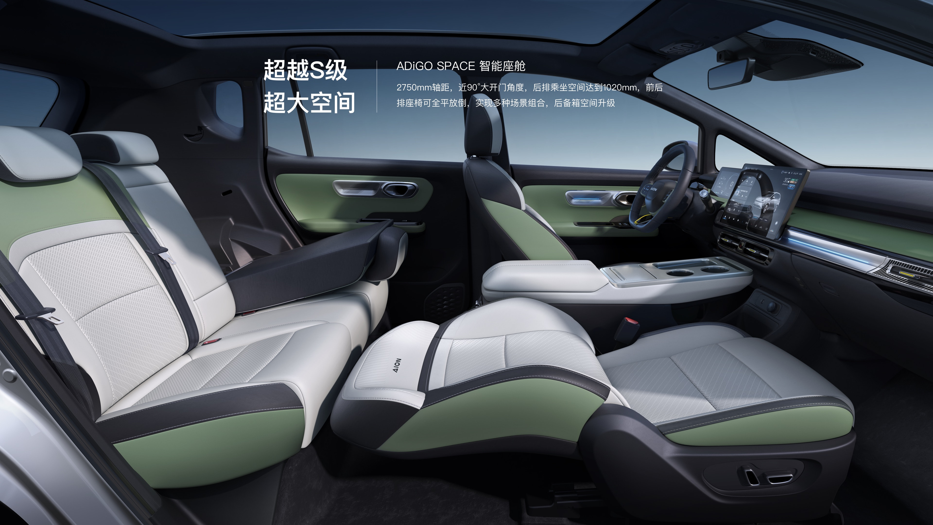 4、Super S-class space, the front and rear seats can be fully flat down, intelligent cockpit