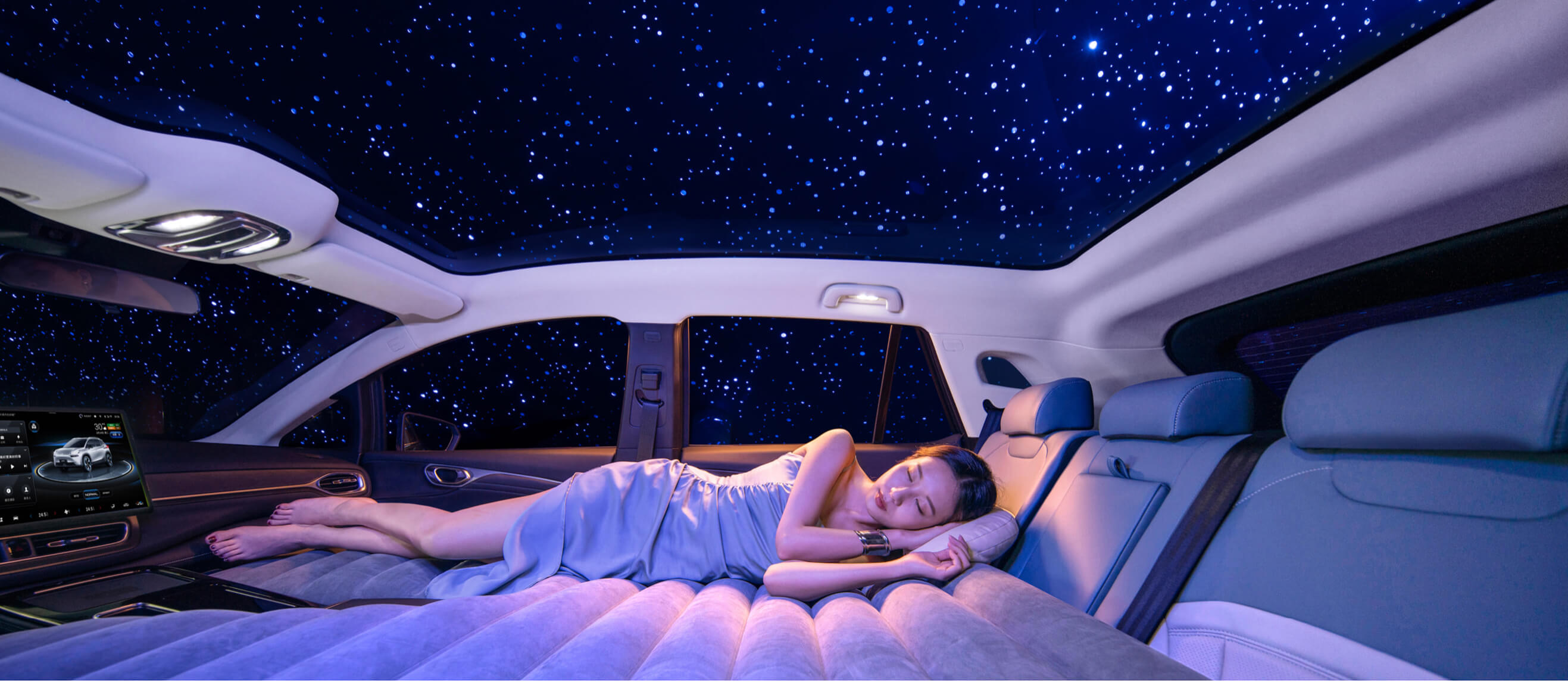 3、AEP2.0 pure electric exclusive platform, class rear large legroom, front and rear seats can be fully flat put down, private theater enjoyment